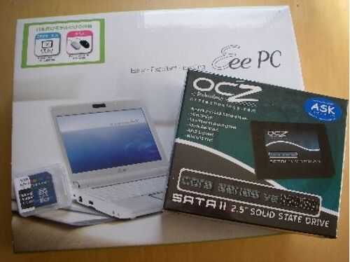 Thinkpad X61とeeePC901-Xをドナドナして、eeePC1000H-Xを購入しました。 eeePC1000H-Xの箱の左にあるのが購入特典として付いてきた16GBのSDHCカード、そして右側にあるのがSSD化のため別途購入した120GBのSSD。 Thinkpad X61の買い取り価格がイマイチだった…