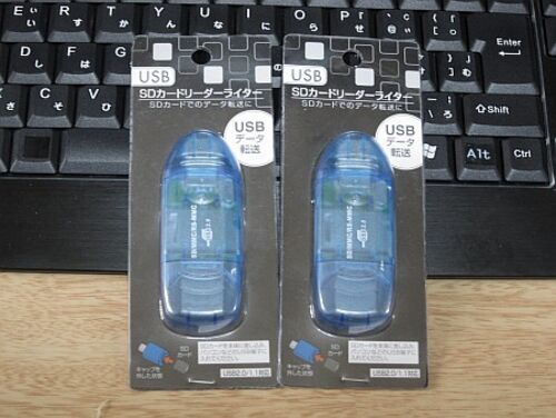 エイデンでは結局メモリーカードリーダーは買わなかったのですが、代わりに買ったのがこれ。 前にもエントリしたワンコインSDHCカードリーダー(の色違い)です。 セリア(105円ショップ)で見つけたので、2つ買いました。 105円ショップで購入しましたから、厳…