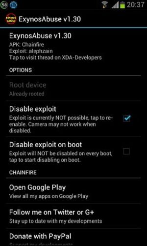 サムスンのARM互換CPU、Exynosを搭載する端末に本体上の操作だけでroot権限が取得できてしまう脆弱性が発見されたとのこと。 Samsung製プロセッサ搭載端末に脆弱性情報、Galaxyシリーズなどに影響か 日本国内で販売された端末ではドコモ版Galaxy S II(SC-02C…
