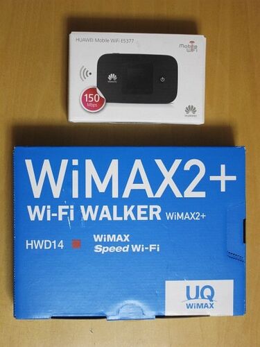 先日中古のモバイルルーターを2台購入しました。 HuaweiのSIMロックフリーモバイルルーターE5377s-327(上)とWiMAX2+(TD-LTE)とWiMAXに加えauのFDD-LTEも利用できる3方式対応のこれまたHuawei製モバイルルーターHWD14(下)です。 まずはHuawei E5377s-327から…