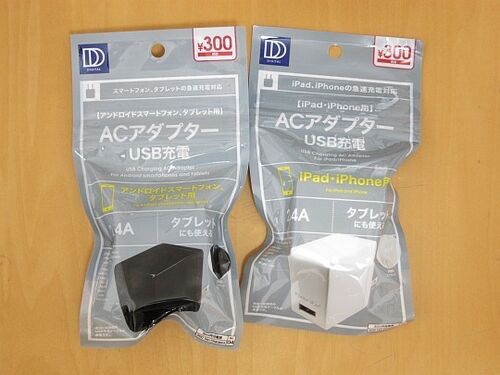 100円(税別)ショップで買えるモバイルグッズとしてのUSB充電アダプターは以前からダイソーでiPhoneの付属品もどきのもの(5V1A出力)が216円で売られていましたが、新たに5V2.4A出力のものが324円で出てきた、という情報が先日Twitterで流れてきて気になったの…