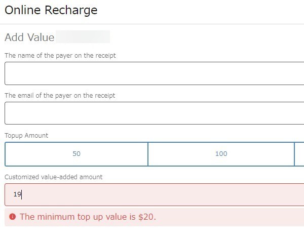 結局のところ決済に失敗していて、それ故チャージにも失敗、という事になりそうですが、もしかすると「チャージ最低額はHKD20」と表示されるのに実際はそうではなくHKD50だった、という事かも知れません。