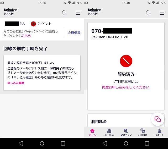 過去エントリで「1GB無料プランの終了前に解約する」と言っていた通り、先月下旬(8/28)に楽天モバイルを解約しました。