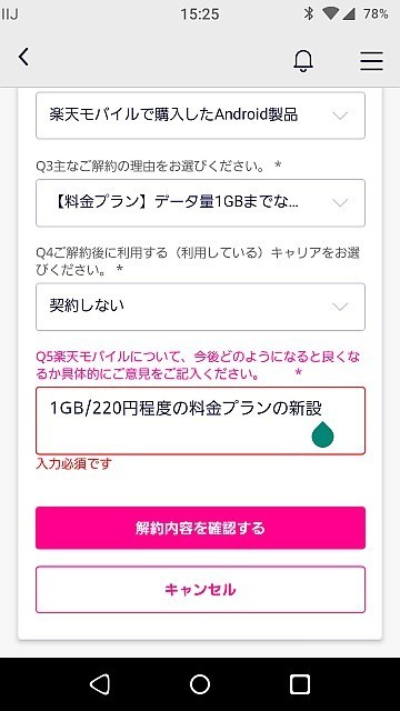 ですから解約手続き途中で出てくるアンケートにこのように書きました。
