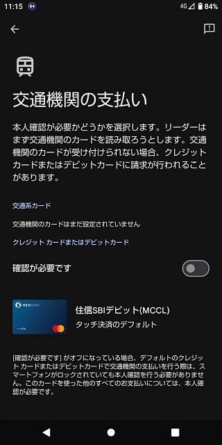 恐らくこの設定はNFC Payのリーダーと現地交通系カードのそれが一体化している交通機関でのみ有効になり、それらが別々になっている日本では機能しないのでしょう。